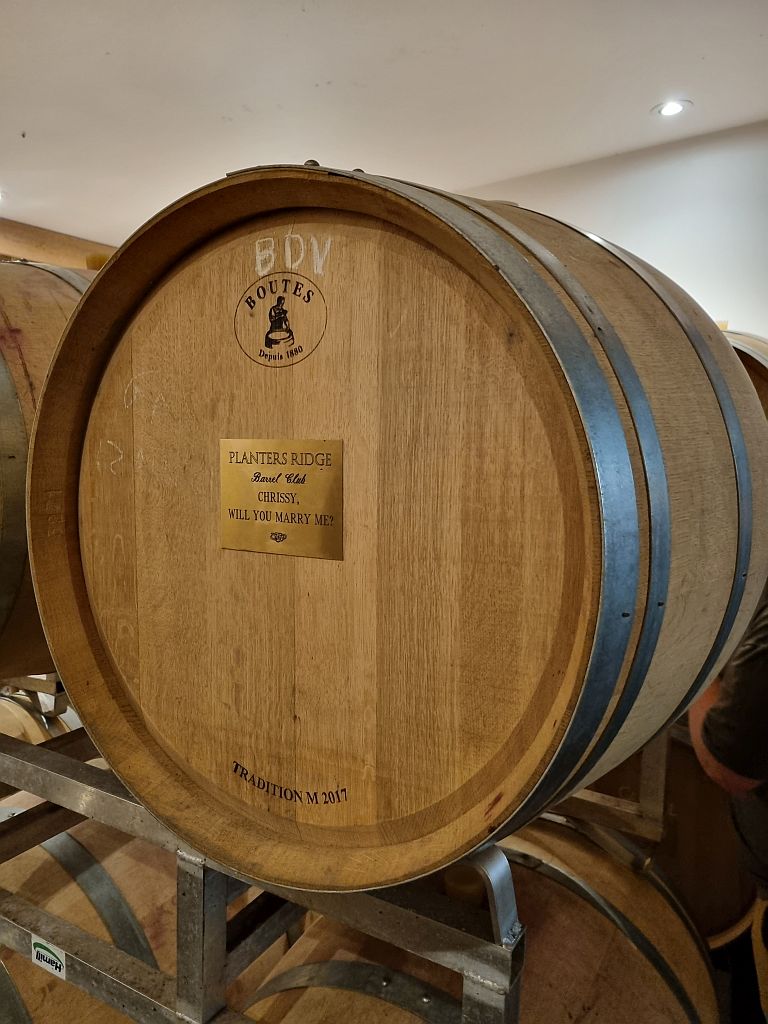 Bei einer der letzten Weintouren hier war ein Paar, wo der Herr ein Fass hier gekauft hat (kostet etwa 1.500 kanadische Dollar) und es seiner Freundin zeigen wollte. Und als sie es dann gesehen hat, kniete er vor ihr und … auf jeden Fall gehört das Fass jetzt beiden. Und unser Guide fand das so romantisch, dass ihm sogar eine Träne aus den Augen gekullert ist.
