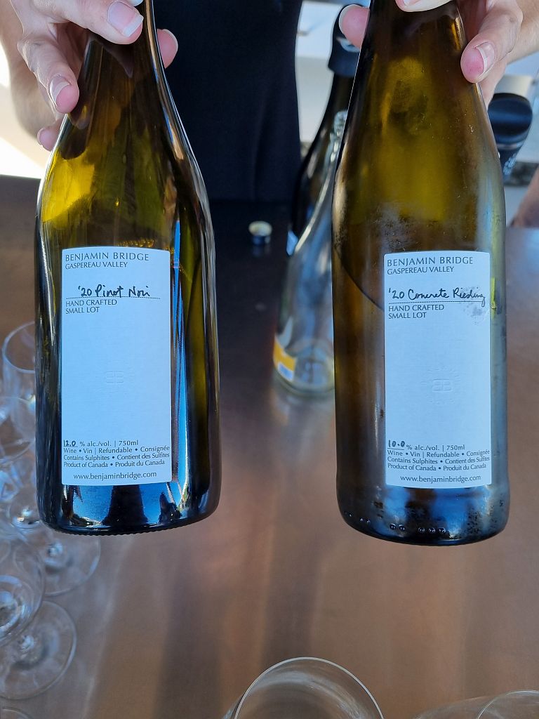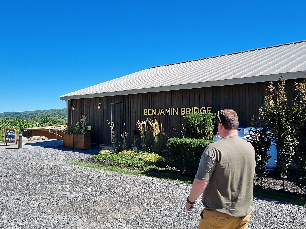 Das Weingut Benjamin Bridges liegt in einem Tal mit einem sehr speziellen Mikroklima, weswegen hier auch ein paar andere Dinge gemacht werden können. Waren es bislang eher die für das nord-amerikanische Klima angebauten Hybrid-Trauben, die hier angepflanzt wurden, so wechselt es langsam zu alten Trauben wie Pinot Noir. Auch finden hier Dinge wie die Zement-Fässern Verwendung.