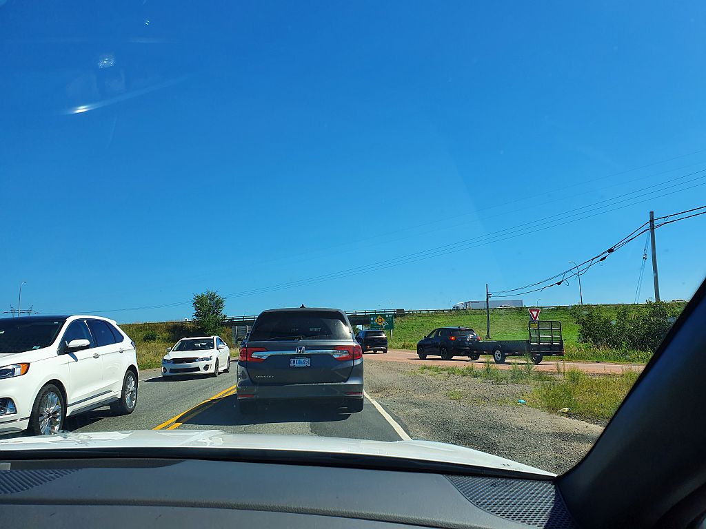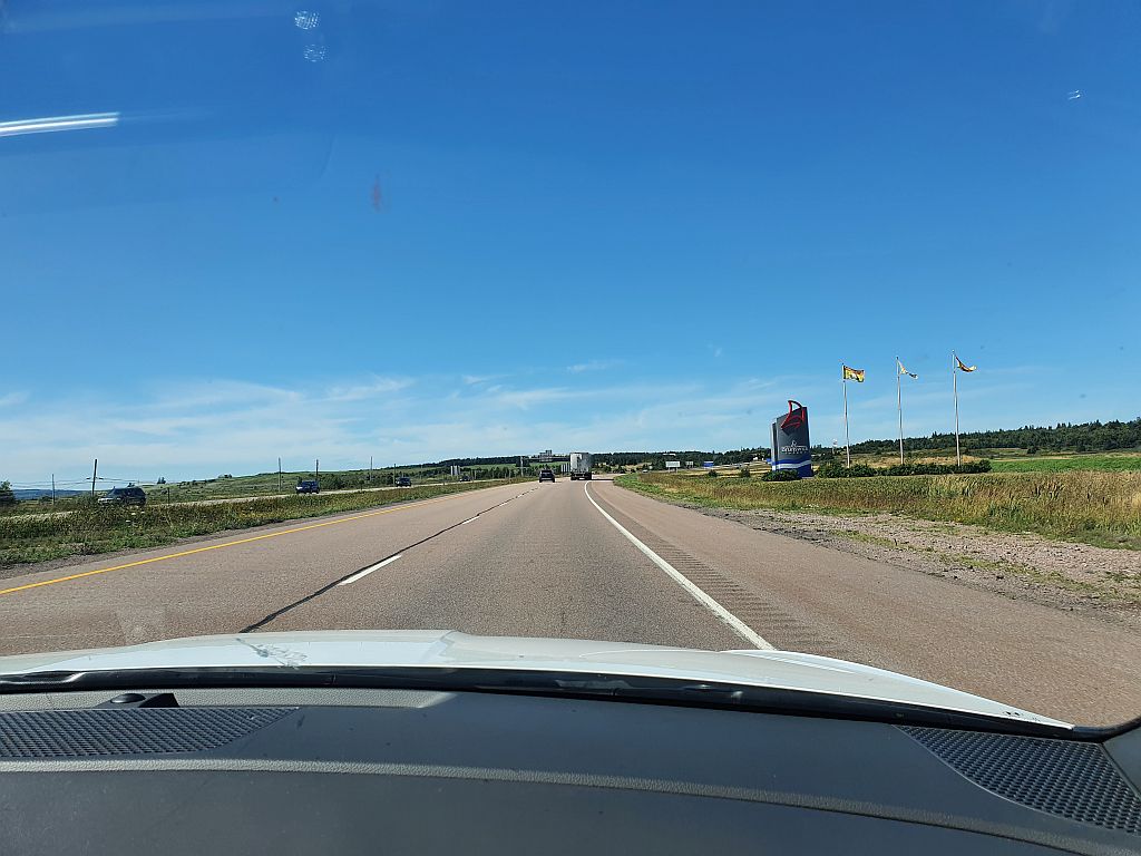 Weiter auf dem Highway. Kurz hinter unserem Stop wurde der Highway 104 zum Highway 2. Die Nummern ändern sich nämlich pro Territory. Vorher gab es noch etwas Aufregung, da ein Teil des Highways Mautpflichtig ist. Das gilt aber nicht für Autos mit einem Kennzeichen aus Nova Scotia, was wir glücklicherweise hatten.