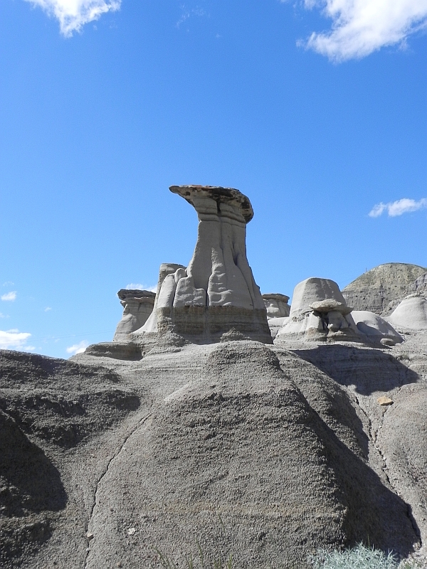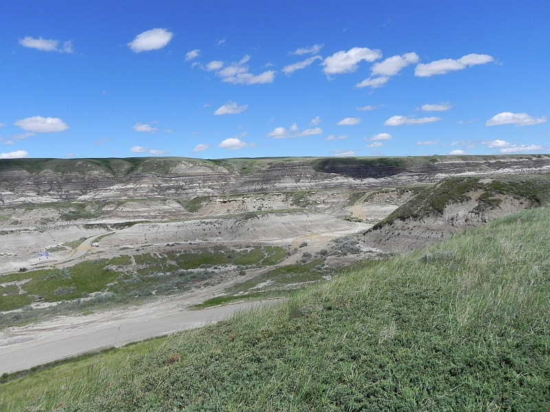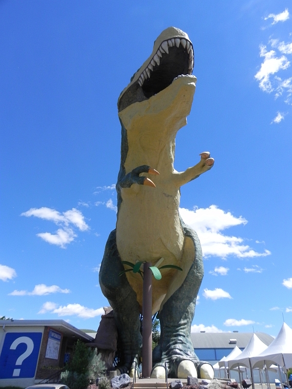Nach einer ereignislosen Autofahrt durch plattes Land kamen wir in Drumheller an. Der Ort ist bekannt geworden, weil dort und in dem umgebenen Red Deer River Valley von Joseph Burr Tyrrell im Jahr 1884 Dinosaurierfossilien gefunden wurden. Nach ihm ist auch das in Drumheller gelegene Royal Tyrrell Museum of Palaeontology benannt und in das fahren wir zuerst.