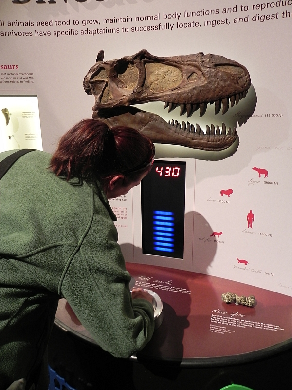 … gab es auch eine „Ausprobiert“-Zone, wo man sich zum Beispiel daran ausprobieren konnte, ob man mit den Händen so viel Druck wie das Gebiss eines Tyrannosaurus Rex erzeugen kann.