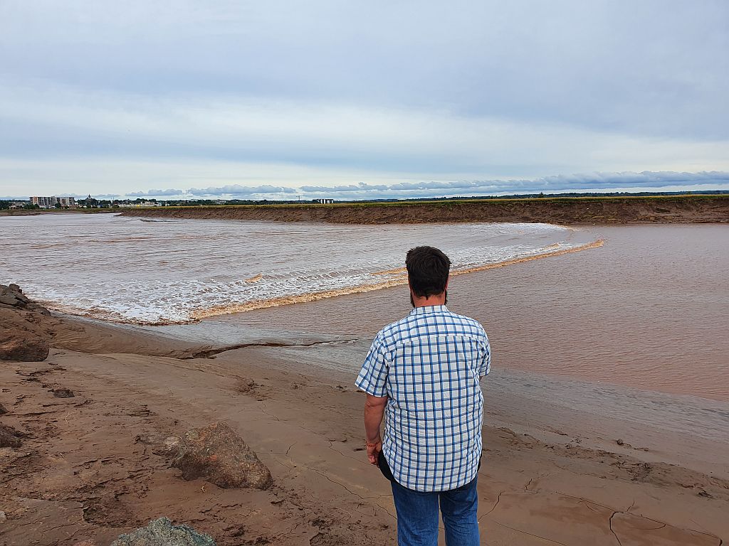 Nachdem wir ja gestern schon einmal versucht haben, die Auswirkungen des Tidenhubs der Bay of Fundy auf den durch Moncton führenden Petitcodiac Fluss zu beobachten.