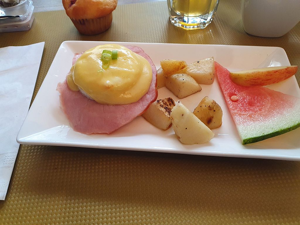 Also sind wir dementsprechend früh aufgestanden und haben das Frühstück im Harbour House genossen. Das läuft hier so ab, dass man sich Toast und Jam frei nehmen kann. Für den Rest gibt es eine Karte, von der man eine Sache bestellen kann. Heute war so ein Eggs Benedict-Tag.