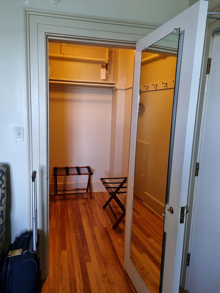 Auch etwas Stauraum gab es, im Gegensatz zu anderen Unterkünften auf dieser Reise. Wenn auch ein aufgeklappter Koffer ausgereicht hat, um sich im Raum nicht mehr bewegen zu können.
