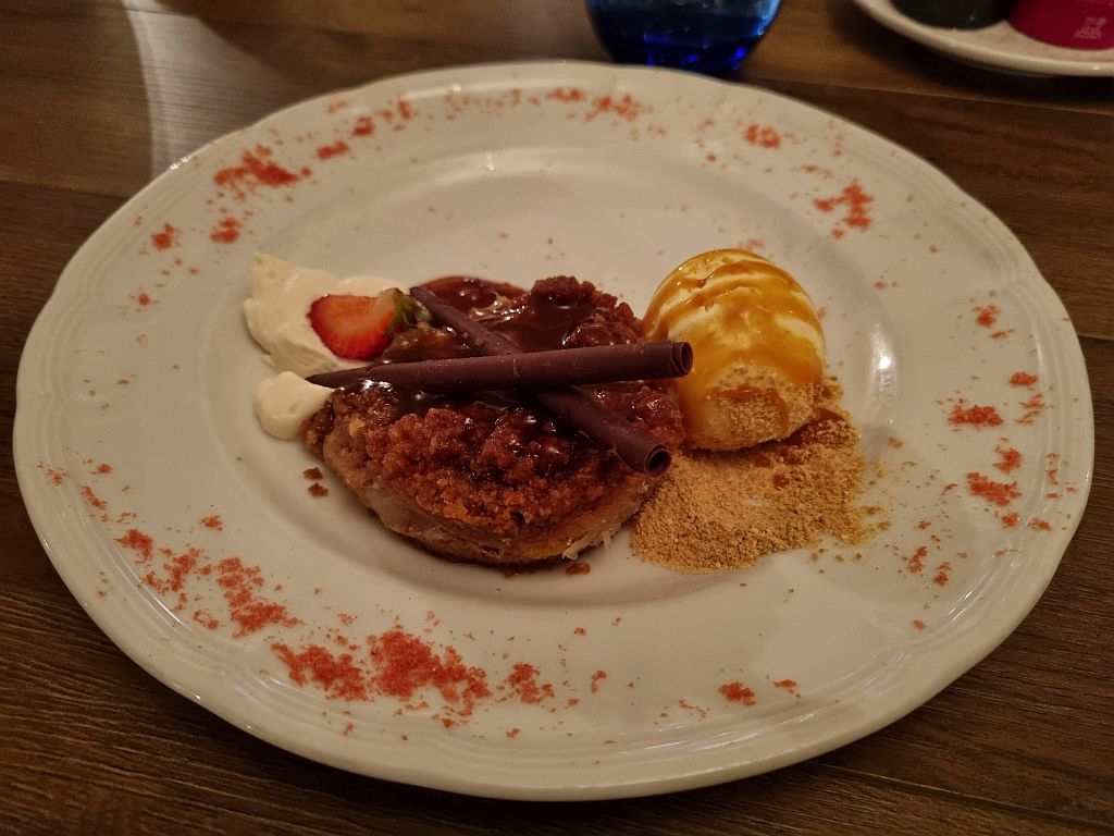 Nachtisch gab es auch und inzwischen waren auch hier alle Tische belegt und wir spielten was auf dem Tablet (Kniffel, in der Regel zumindest) und quatschen mit anderen Gästen.