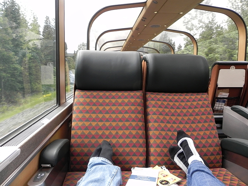 Also haben wir uns in den Panoramawagen verzogen. War uns eh lieber, denn da konnte man wirklich gut in die Gegend schauen, dabei einen Kaffee oder einen Tee trinken und sich einfach entspannen, ein Buch lesen, etc. Eine wahre „Bahnkreuzfahrt“ im eigentlichen Sinne.