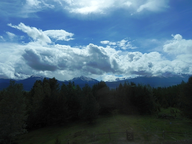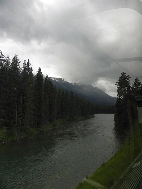 Am Fenster zieht dabei die Landschaft von Alberta vorbei: Es wechseln sich plattes Land und kleinere Orte ab bis man langsam in die Rocky Mountains kommt und wir wieder die Berge haben. Wir nehmen ja jetzt im Grunde genommen den gleichen Weg wie am zweiten Tag.
