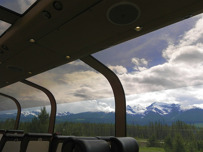 In Jasper haben wir einige Besorgungen gemacht und uns ein paar Wasserflaschen besorgt. Denn nach dem Halt begann der spektakulärste Teil der Strecke, der teilweise durch Gegenden führt, wo kein Auto fährt. Hier hiess es also: Sich im Panoramawagen bequem hinsetzen …