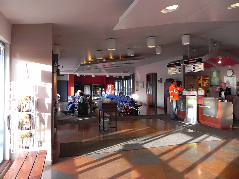 Wir sind also in das Bahnhofsgebäude rein und haben eingecheckt.