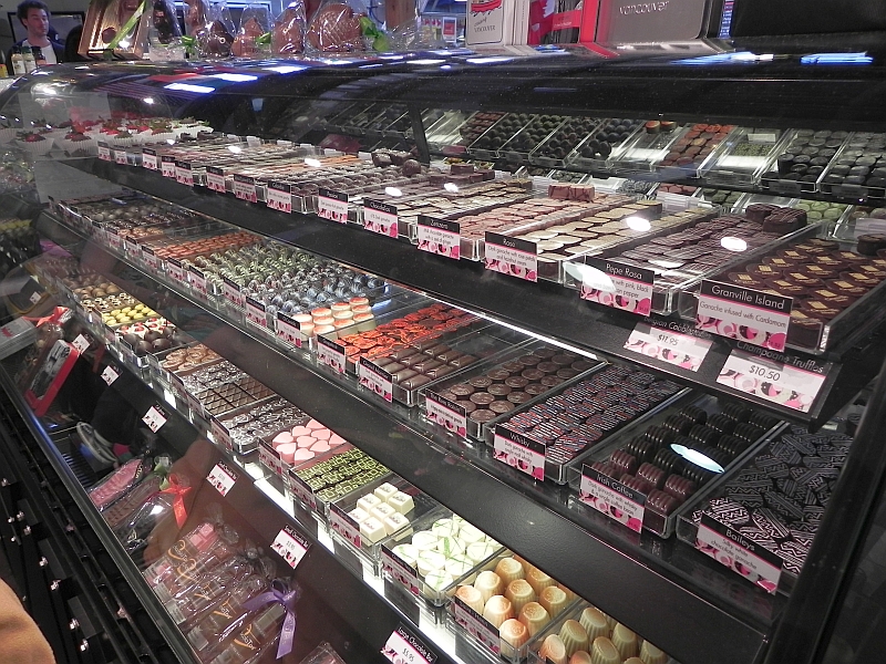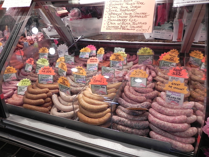 Auf Granville Island, einem sehr künstlerisch und alternativ angehauchten Stadtteil Vancouvers mit vielen kleinen Geschäften, Ateliers und Ausstellungen, sind wir einfach herumgeschlendert und so in die Markthalle gekommen. Beeindrucken, was da an lokalen Dingen verkauft wurde.