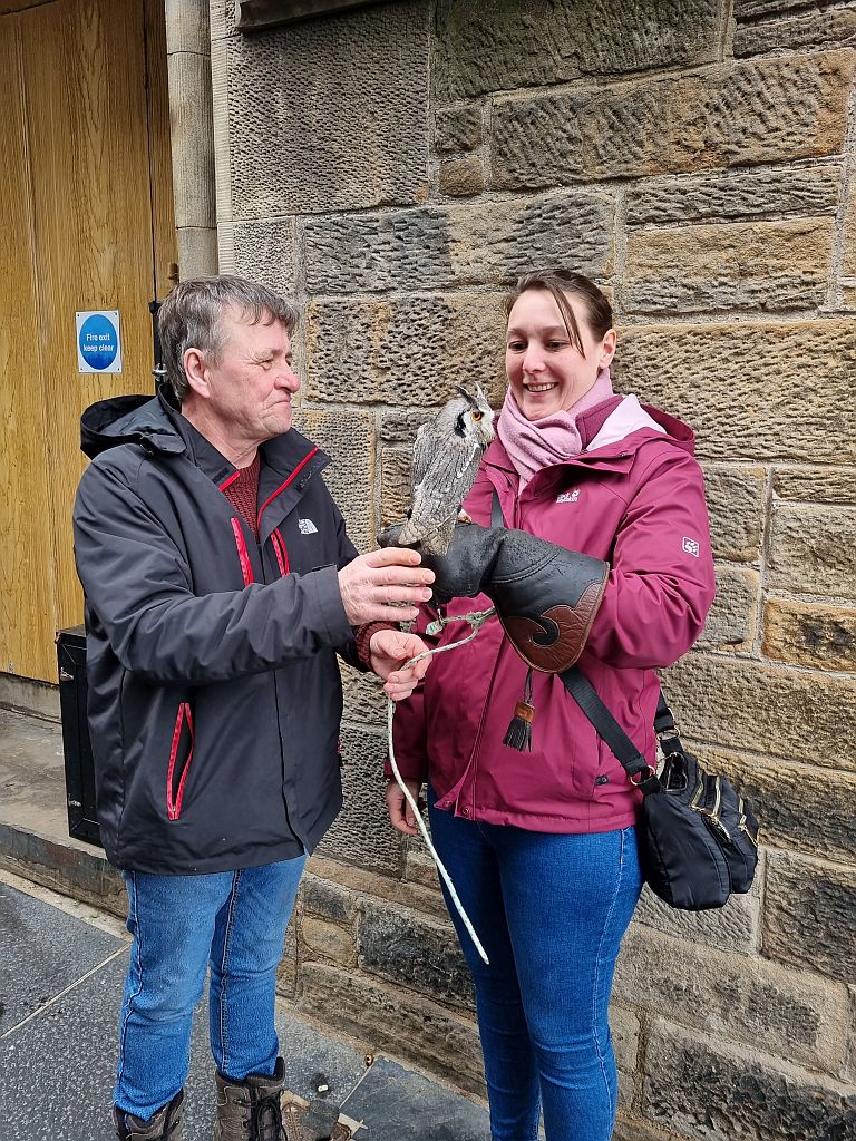 Und im Zweifelsfall auch auf Anfrage, so wie hier bei diesen Eulen, die von einem nahen Wildlife Conservation Park gezeigt wurden.