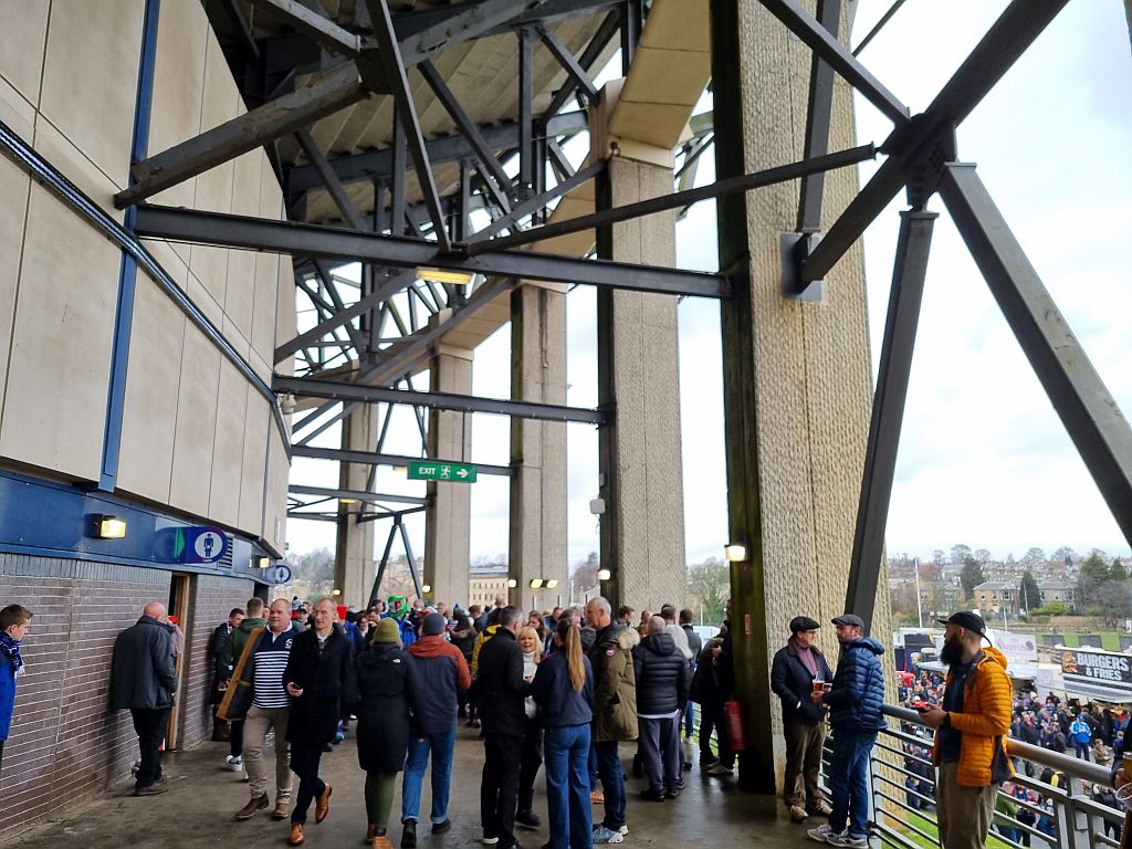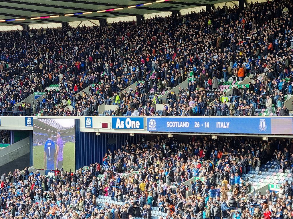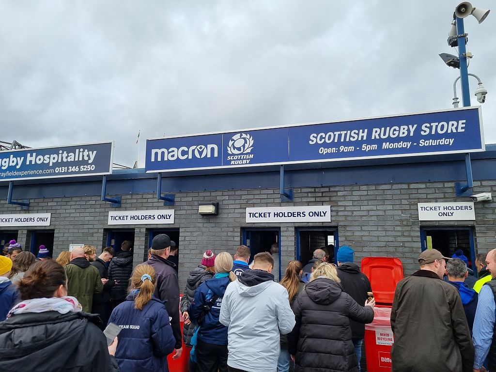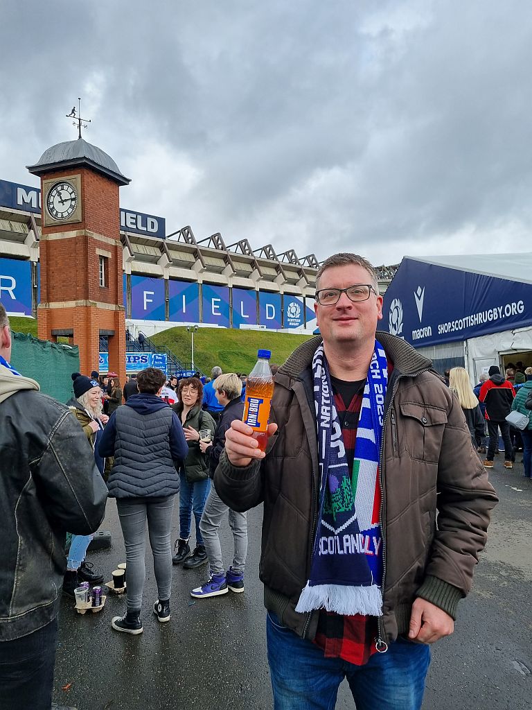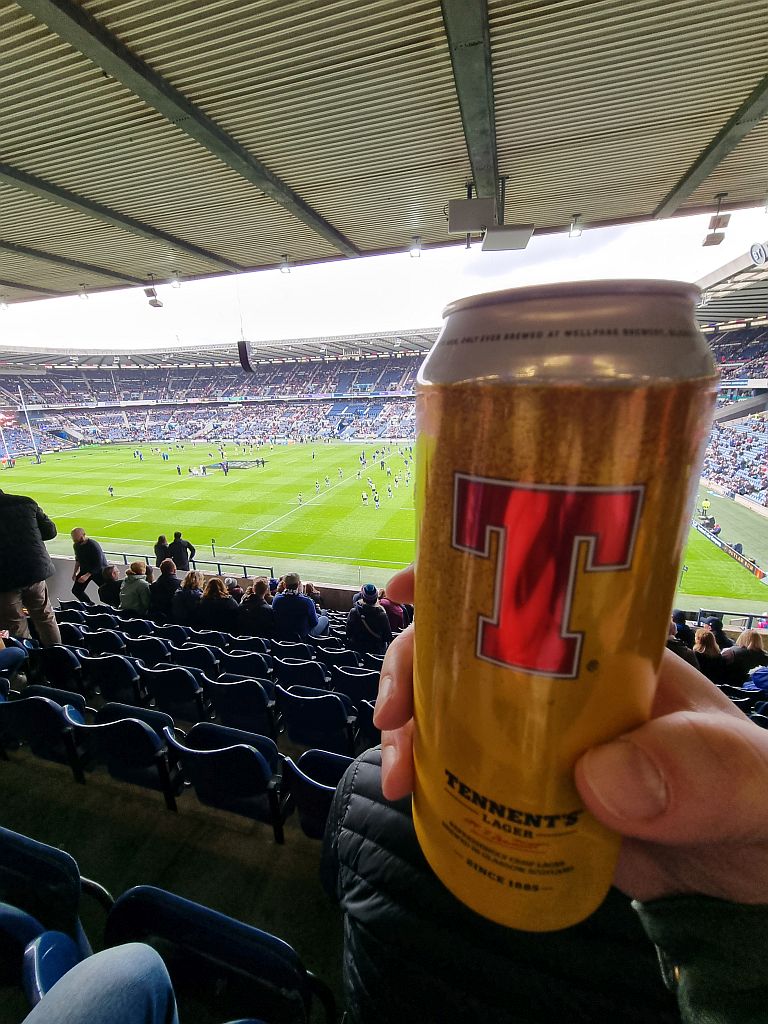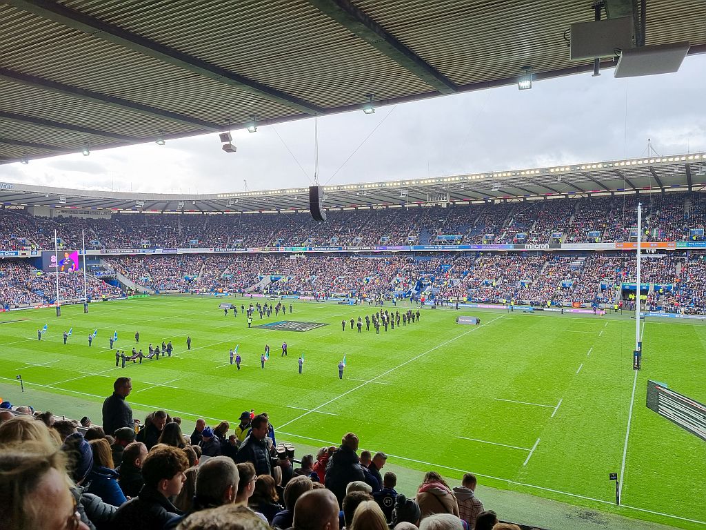Nicht das das irgendwie Problematisch sein würde, für den Gast zu sein. Denn wie immer zeigten sich die Rugby-Fans trinkfreudig und offen. Hier und da hörte man andere Sprachen und alle waren gut drauf und freundlich. Eine kleine Band spielte rockige Musik, es wurde sehr viel konsumiert (Bier, Irn-Bru, Essen) und man freute sich auf das für die 6 Nations-Tabelle bedeutungslose Spiel.