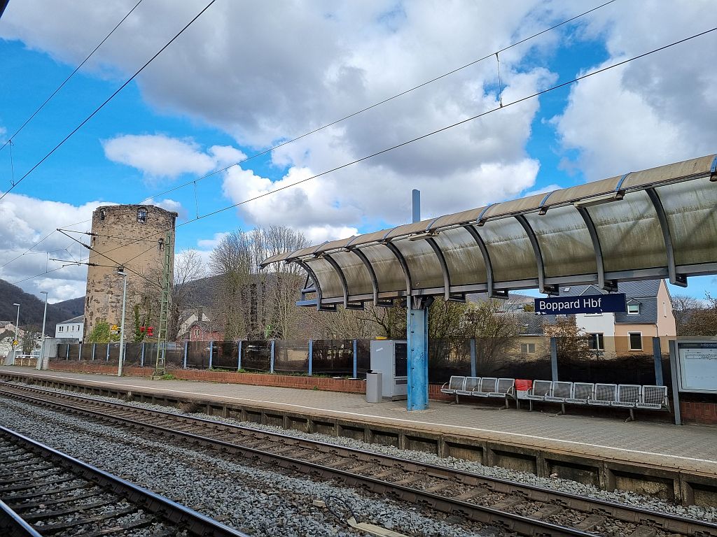 Nachdem wir recht hektisch zum Bahnhof gegangen waren, kam – natürlich – die deutsche Bahn dazwischen. Als der Zug in der App gerade den Bahnhof vor Boppard verlassen hatte, fingen die Lautsprecher an knarzend zu Verkünden, dass unser Zug 20 Minuten Verspätung hat.