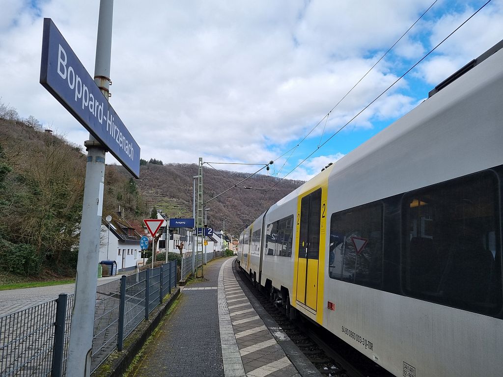 Das kann ja in unserem Falle nur eines bedeuten: Eine neue Etappe des RheinBurgenWeges steht an. Die heutige Etappe geht von Boppard-Hirzenach nach St. Goar, also zum berühmten Loreley-Felsen. Und wie ebenfalls üblich geht es mit der Bahn zum Startpunkt.