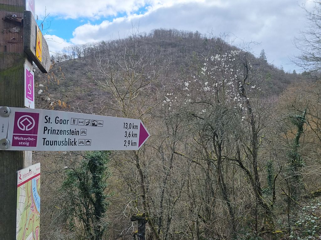 Immer wieder faszinierend, wie die verschiedenen Wege (Welterbesteig, Traumpfade, RheinBurgenWeg, Jakobsweg und diverse lokale Wanderwege) unterschiedliche Entfernungen zum gleichen Zielort haben.