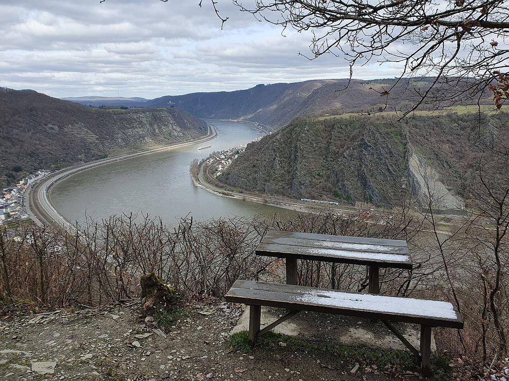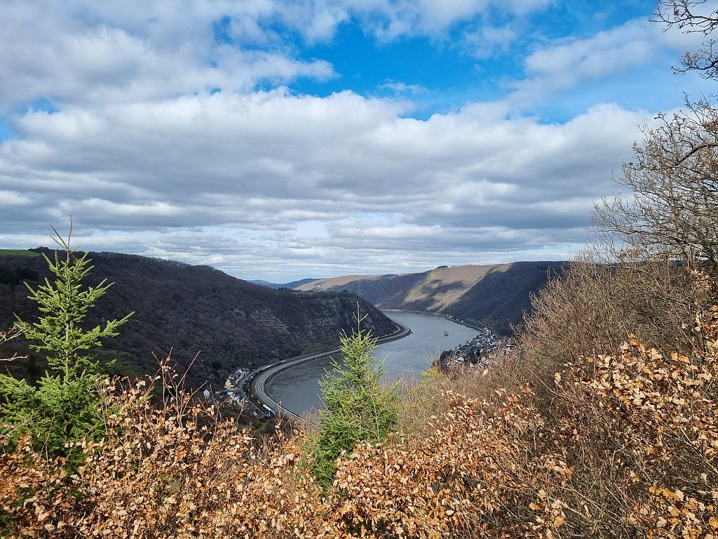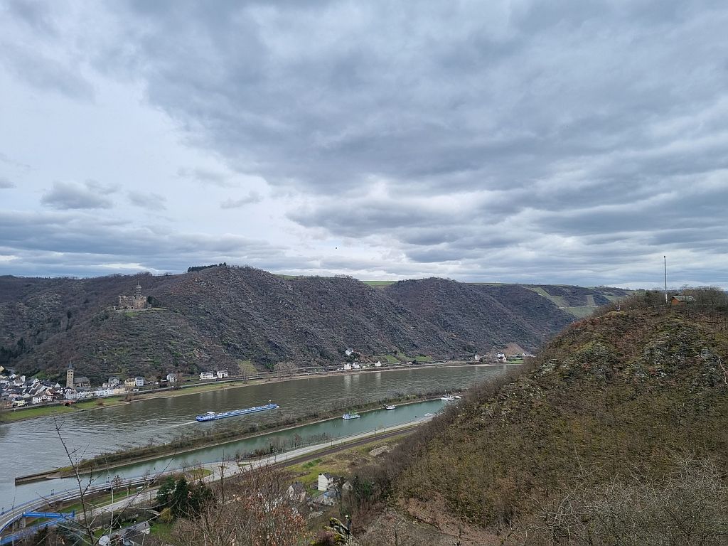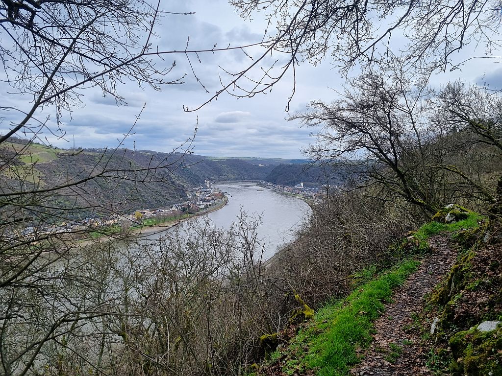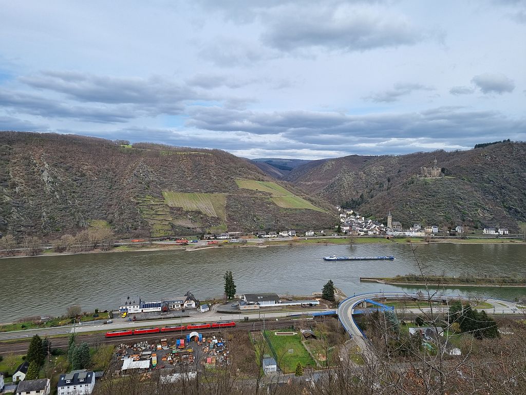 Auch diese Etappe zeigte wieder schöne Blicke auf den Rhein und hier den kleinen Ort Hirzenach mit seinen 300 Einwohnern.