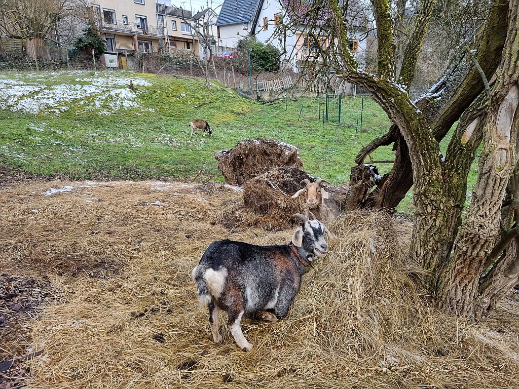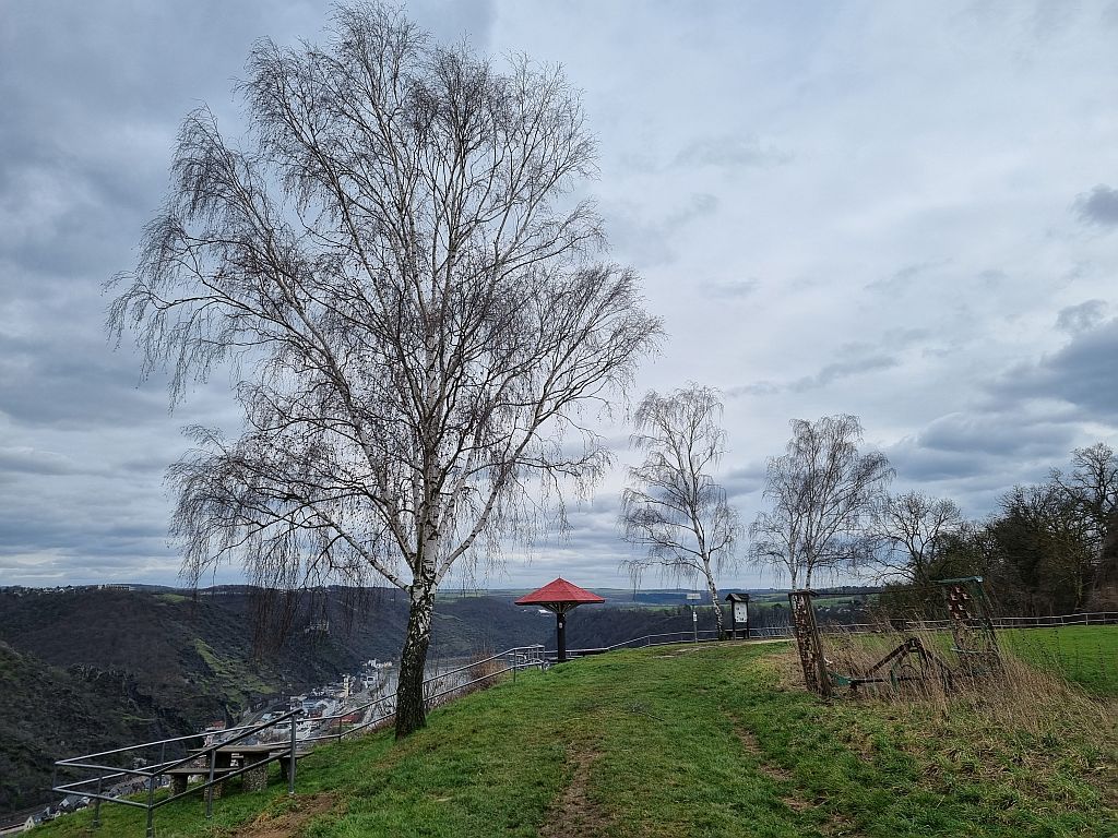 Hier begann nämlich auch schon der Abstieg in Richtung St. Goar. Wie öfters führt der RheinBurgenWeg am Ort vorbei und wir müssen dann immer entscheiden, ob wir den offiziellen Weg entlang gehen (geht dann öfters noch einmal den Berg hinauf und dann steil zum Ort hinab) oder ob wir schon vorher den asphaltierten Straßen folgen und bei der nächsten Etappe dann quasi ein Stück überspringen.