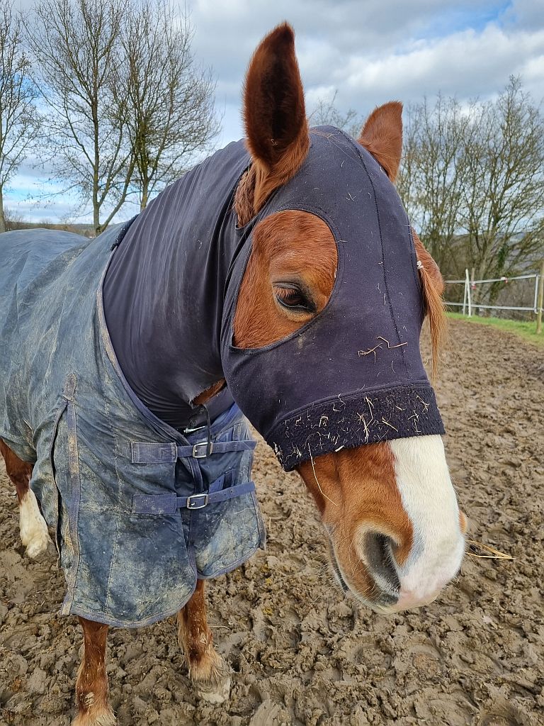 Apropos Mittagspause: Wir machten dann an einer kleinen Bank mit Blick auf eine Pferdekoppel auch eine.
