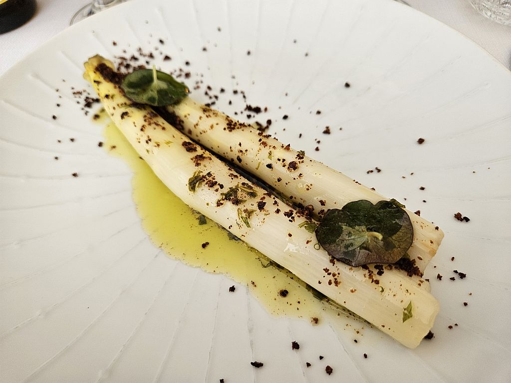 Meike lies sich vom sehr charismatischen Service zum Spargel überreden. Die Dänen haben zum Spargel ein ähnlich religiöses Verhältnis wie die Deutschen und daher bekamen wir fast bis auf die Straße genau mitgeteilt, wo dieser Spargel herkommt und warum er der Beste (!) wäre.