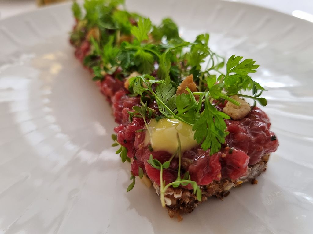 Das war schon hervorragend und hätten wir ein Frühstück gehabt, wäre hier auch genug gewesen. Hatten wir aber nicht, daher folgte dann Runde Nummer Drei mit einem sehr gut gewürzten Tartar, Wachtelei und Estragon-Majo.