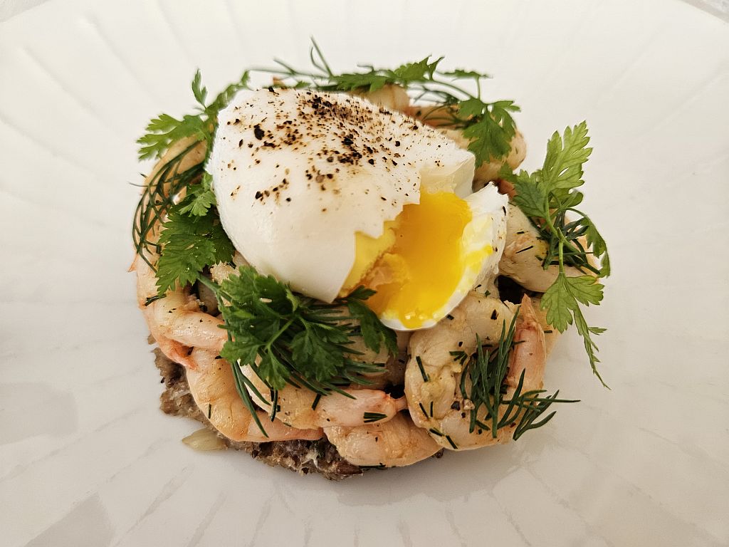 Meike endete mit einer klassischen Kombination: Garnelen mit Ei.