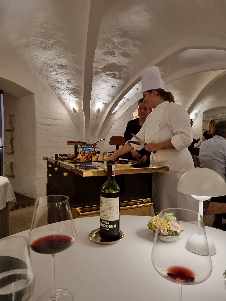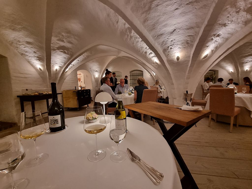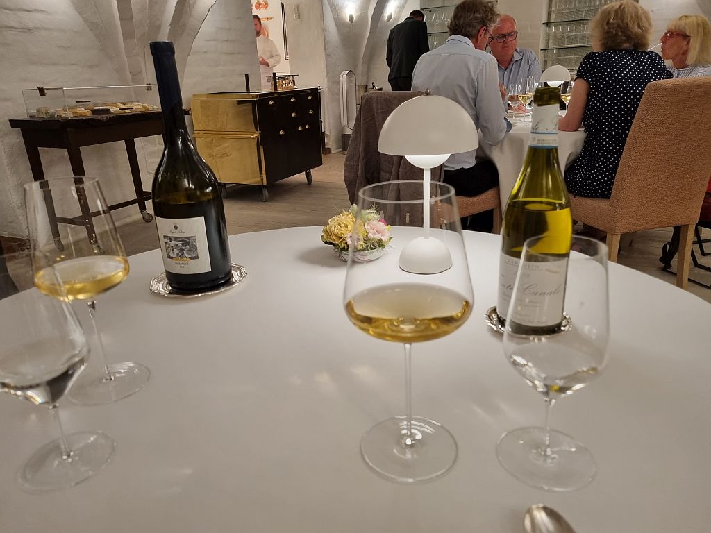 Es gibt drei Weinbegleitungen, eine Renaissance-Begleitung mit „normalen“ Weinen, eine Prestige- und eine Extravagance-Begleitung, wobei letztere mit knapp 1000 Euro pro Person zuschlägen würde.