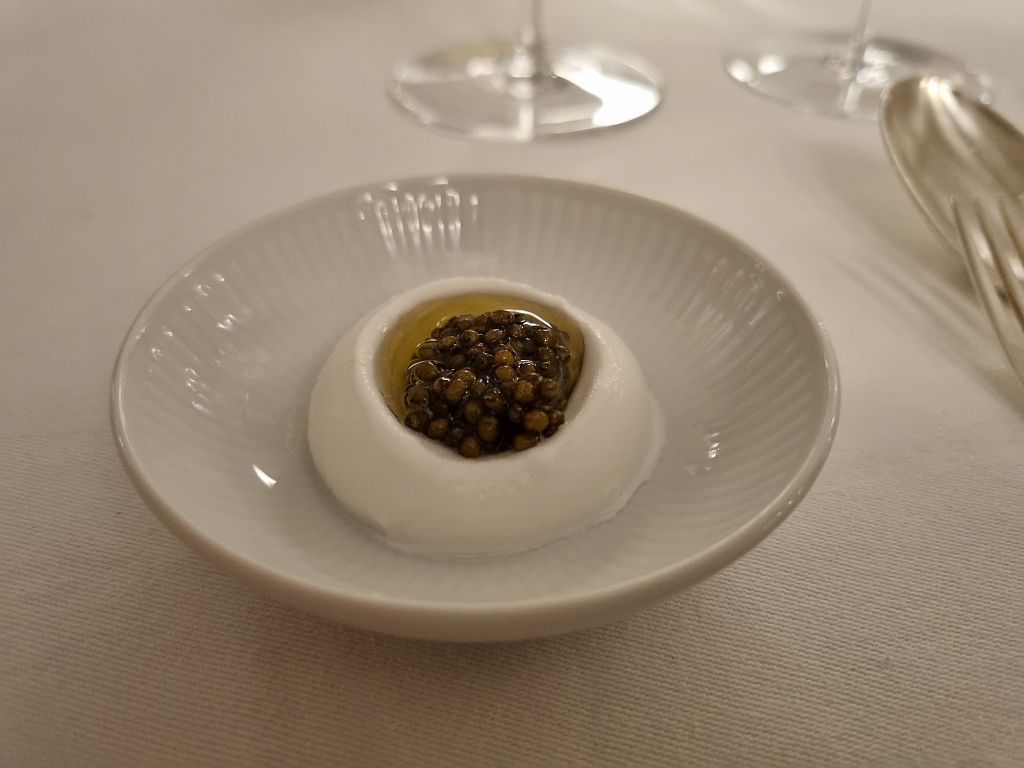 Und noch einmal Kaviar – warum auch nicht mal in einem Nachtisch – mit einer Milcheiscreme und Öl.
