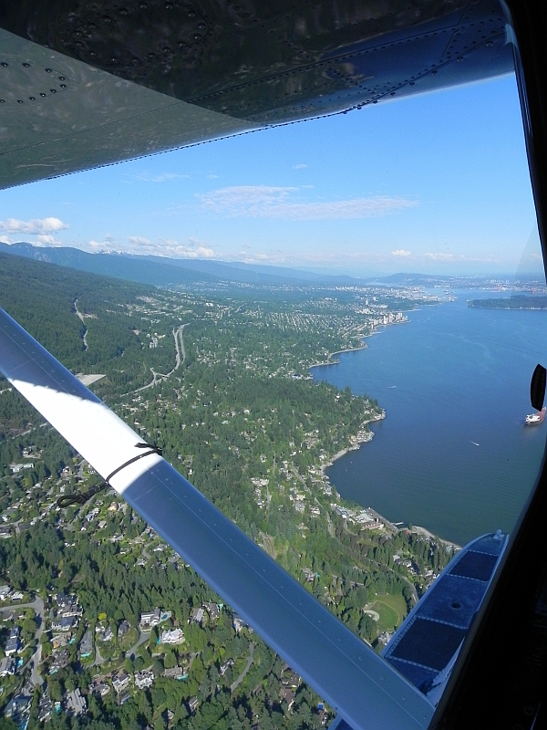 Nach und nach kamen wir wieder in die Nähe von Vancouver. Unser Pilot hat uns während des Fluges über Kopfhörer, die jeder Passagier hatte, über die Geschichte, die Natur und die Sehenswürdigkeiten rechts und links der Strecke auf dem laufenden gehalten.