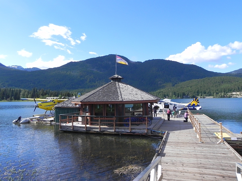 Hierzu braucht man, wer hätte es gedacht, Wasser. Also wurden wir in Whistler Village abgeholt und von einem Angestellten der Whistler Air bzw. Harbour Air zum nahegelegenen Green Lake gebracht, wo der Flughafen von Whistler (IATA Code: YWS) liegt. Bei der Fahrt haben wir übrigens zwei Mitreisende getroffen, die wir schon morgens in Vancouver im Bus gesehen haben: Zwei ältere Personen, die aus Kent in England kommen und hier Urlaub machen.