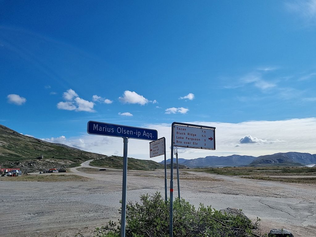 Die Richtungsschilder wurden zum ersten SAS Flug nach Nordamerika mit einen Zwischenstopp hier in Grönland aufgestellt.