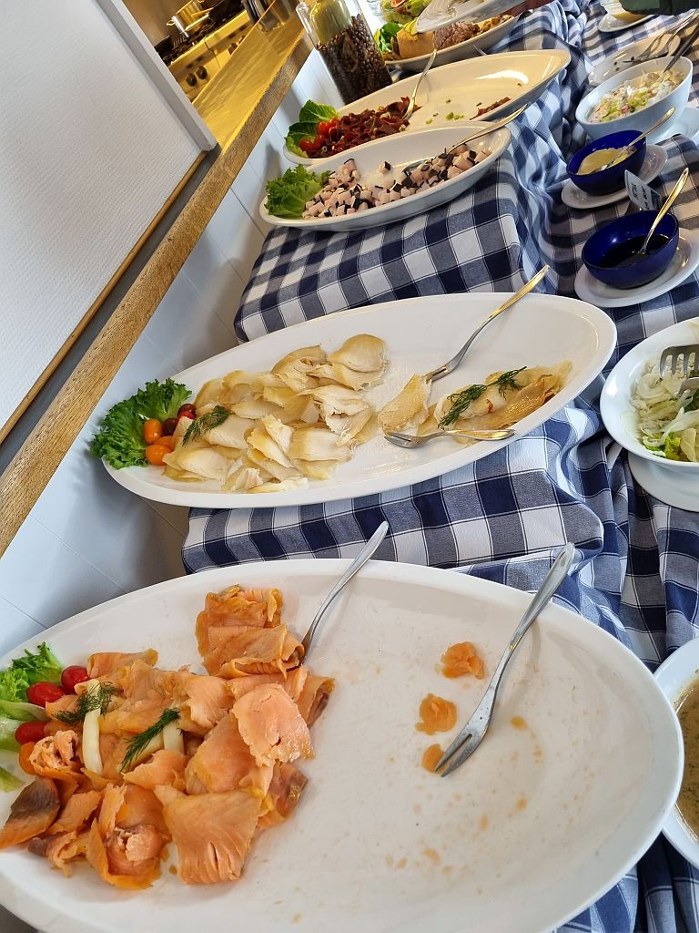 Das ganze Essen ist, so ein bisschen wie das Buffet in Isafjördur in Island 2021, durchorganisiert. Man wird tischweise gebeten aufzustehen und kann sich am Buffet bedienen.