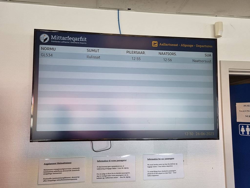 Für uns hieß es, da wir einen späteren Flug nach Ilulissat gebucht hatten (dazu später mehr): Packen, frühstücken, Auschecken (aus dem Zimmer) und Einchecken (für den Flug).