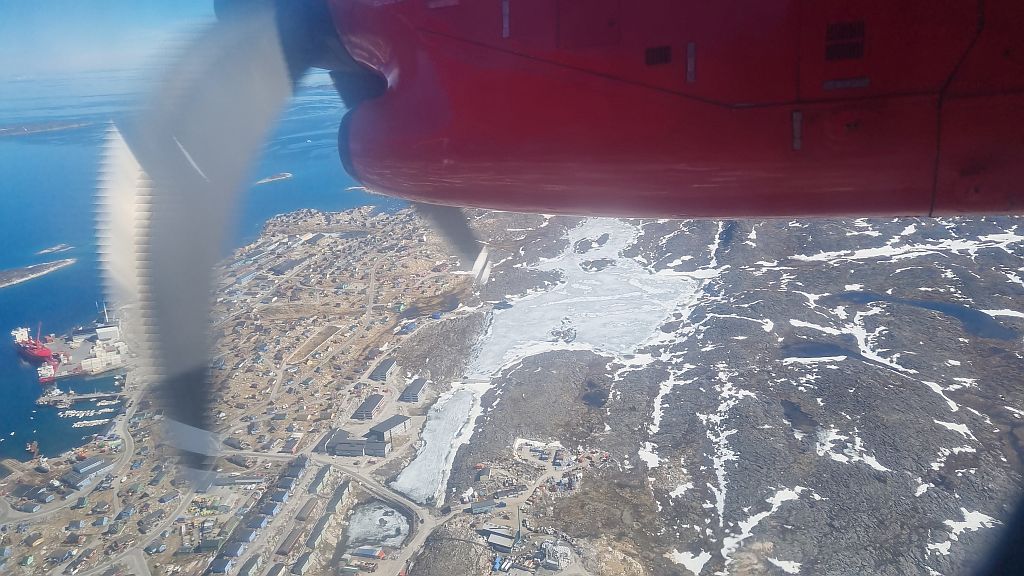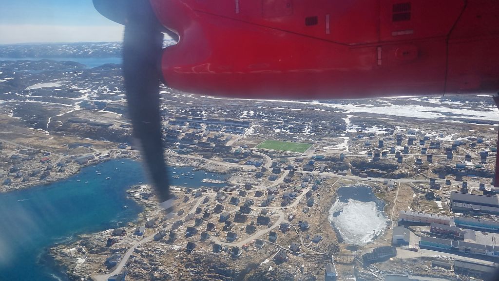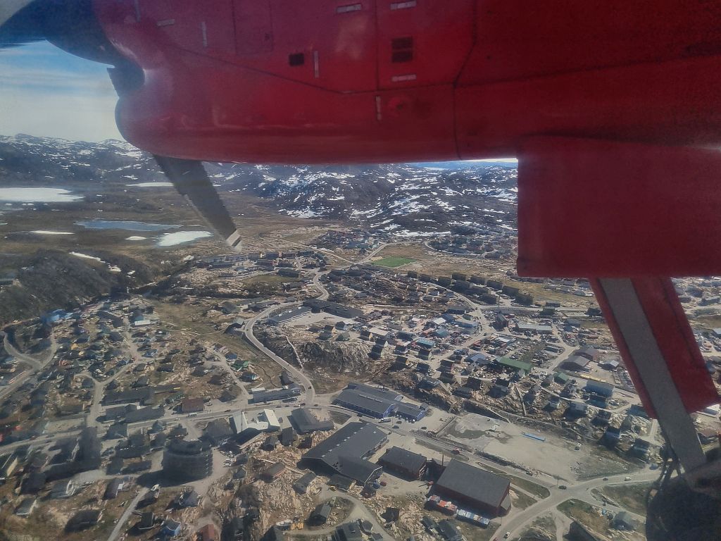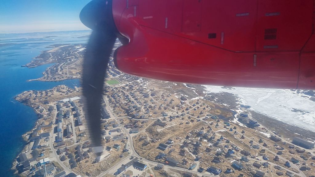 Und dann auch der in einer starken Rechtskurve geflogene Anflug auf Aasiaat.
