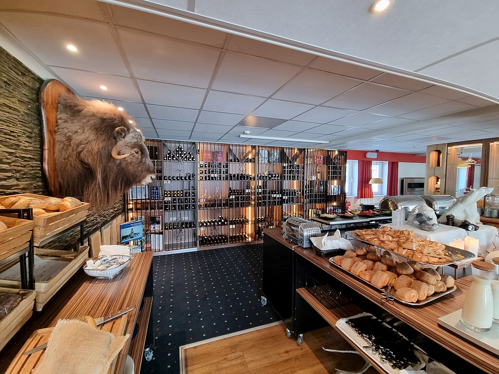 Programmpunkt Eins und Zwei wurden dann erledigt, wobei das Frühstück im zum Hotel und zum Flughafen gehörenden Restaurants Muskox gereicht wurde.