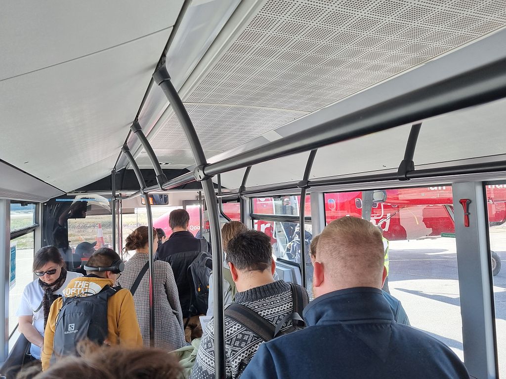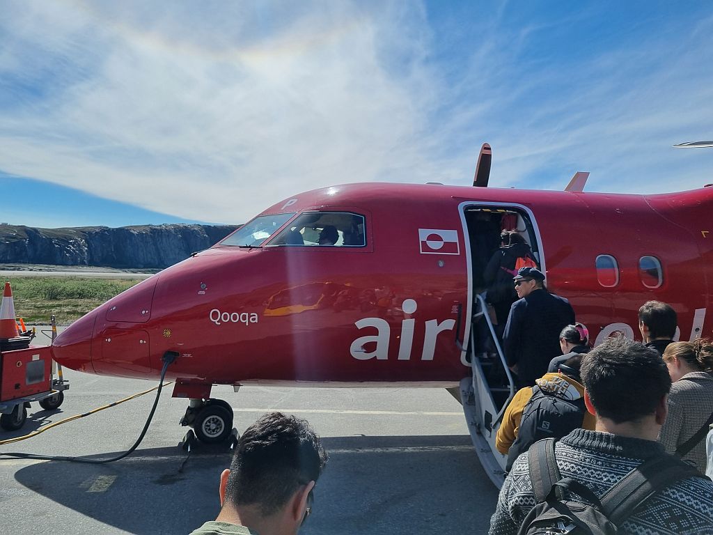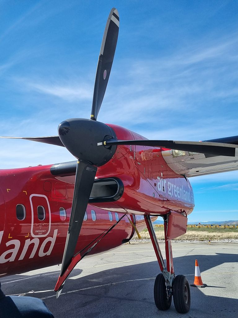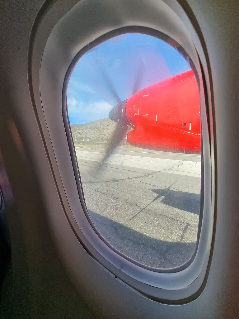 Dann wurde das Boarding ausgerufen. Also wortwörtlich, weil ein Angestellter mit einer recht rauen Stimme kurz etwas auf Grönländisch in den Raum gerufen hat. Alle gingen zurück zum Flugzeug und setzten sich wieder hin.