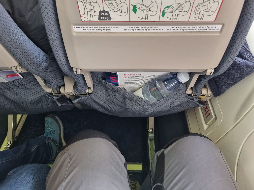 Reihe 4 in einer Dash-8 ist die Exit-Row, daher hatten wir einen großzügigen Abstand zum Vordersitz.