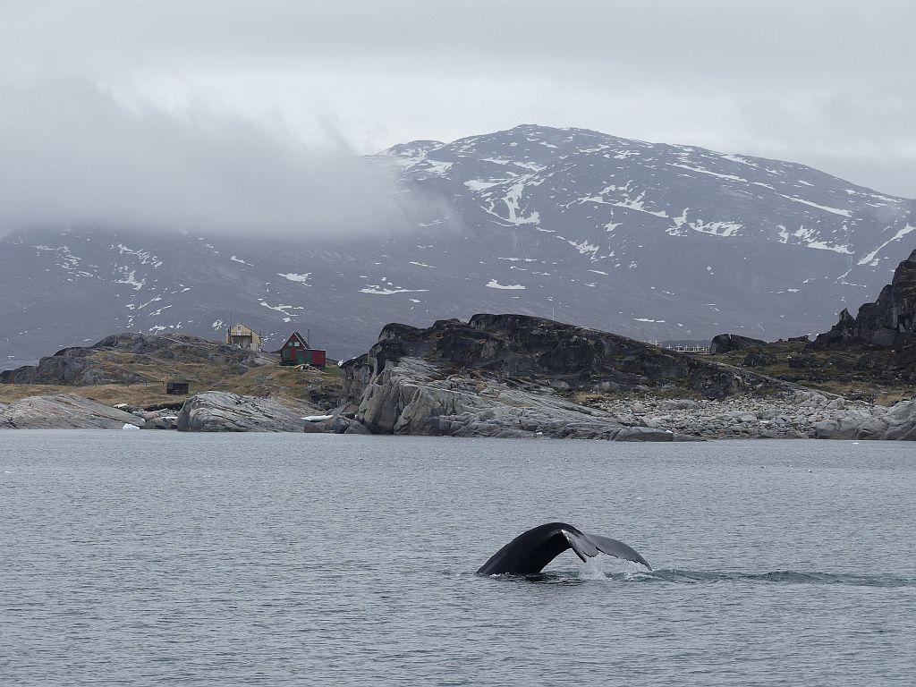 Und weil wir gut unterwegs waren, besuchten wir noch eine alte Walfänger-Siedlung, wo auch heute noch Wale hingeschleppt werden, wenn man sie denn fängt. Die Quoten für Grönland sind eng gefasst, um die Population zu schützen, dennoch gibt es hier ab und an noch einen Wal, der hier sein Ende findet. Die Siedlung wurde übrigens von Deutschen gegründet, die damals als „non plus ultra“ im Bereich Walfang galten. Die Wale wurden schon damals an dieser flachen Stelle an Land gezogen und dann zerteilt. Und lieferten dann Nahrung, Werkzeug und andere Materialien für eine große Menge Menschen.