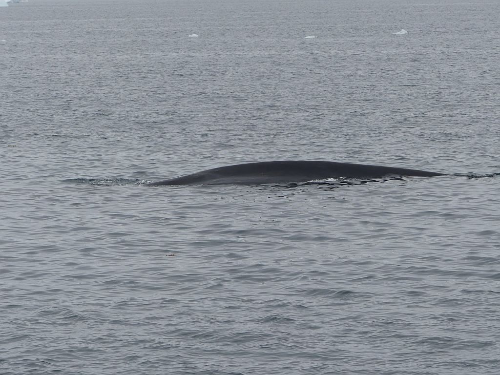 Als Abschluss gab es auch noch einen Finnwal. Die sind größer, aber (Aussage von unserer Guide) langweiliger. Buckelwale sind klein, aber spannender, da sie schneller ab- und wieder auftauchen und somit mehr „Action“ versprechen.