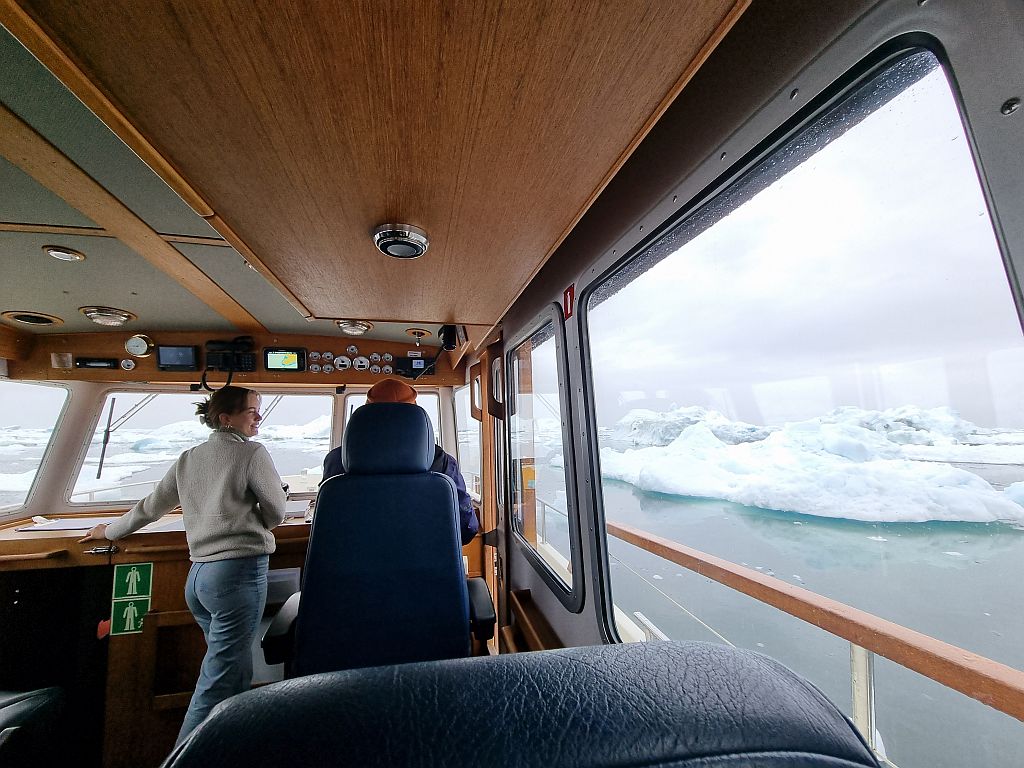 Also „Leinen los“ und ab durch die Eisberge. Was tatsächlich recht anspruchsvoll zu sein scheint, denn der Kapitän musste oft sich einen neuen Weg suchen und hier und da auch mal eine scharfe Wende fahren.