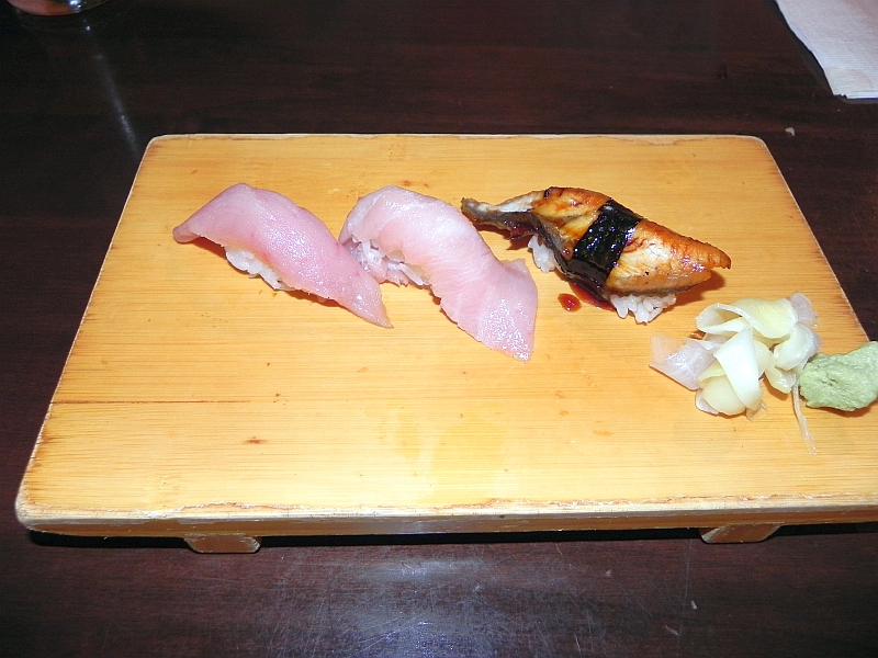 Und als krönender Abschluss Sushi mit Thunfisch, Toro und Ebi (Aal)