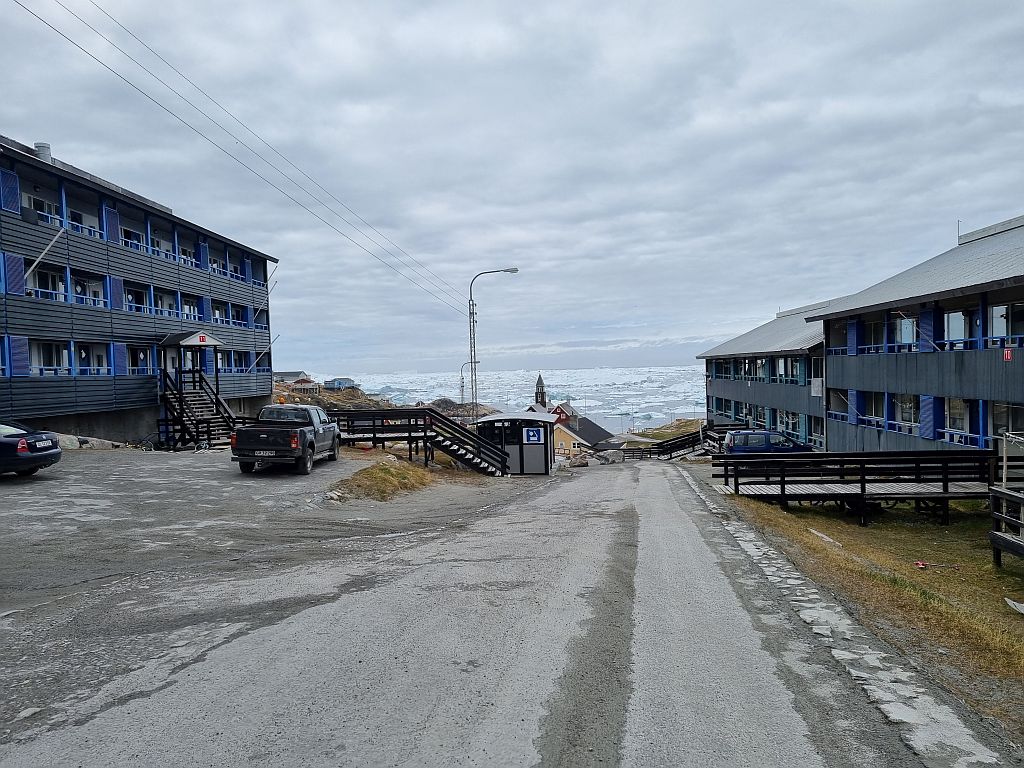 Nach dem bereits sehr schönen Vormittag hatte uns Anders, der von Topas Travel unsere Reise organisiert hatte, einen „Lernt doch mal was über Ilulissat“-Programmpunkt eingebaut. Es sollte also ein Rundgang durch die Gemeinde werden, der um 15 Uhr starten sollte. Von der Walbeobachtung waren wir im Zentrum abgesetzte worden, was eigentlich nichts anders als: „Die größte Kreuzung im Ort und damit der Gegend“ bedeutet.