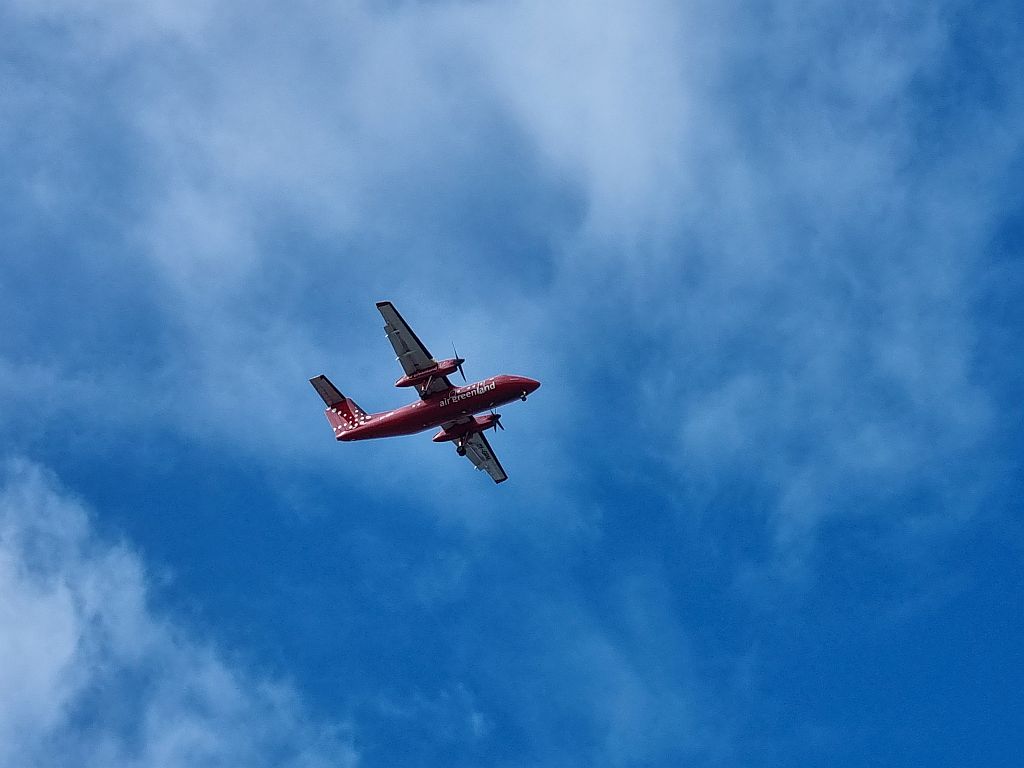 Hin und wieder flogen auch diese kleinen, Propeller-betriebenen Schuhkartons von Air Greenland über uns hinweg.
