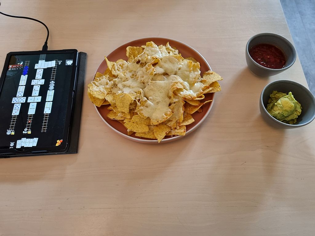 Vor Schreck bekamen wir Hunger und bestellten (ist auf dieser Reise anscheinend eine Art Tradition) eine Portion Nachos. Glücklicherweise ohne Aioli …