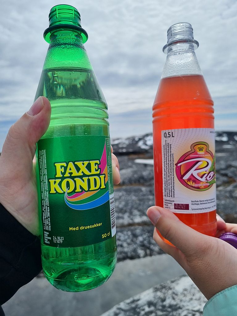 Wir dagegen holten uns, neben den 2 Flaschen Wasser, quasi als grönländische Variante unseres Automatenspiels aus Japan, zwei lokale Getränkeflaschen der Firmen Faxe und Tuborg. Kennen wir ja eher so als Bierproduzenten …