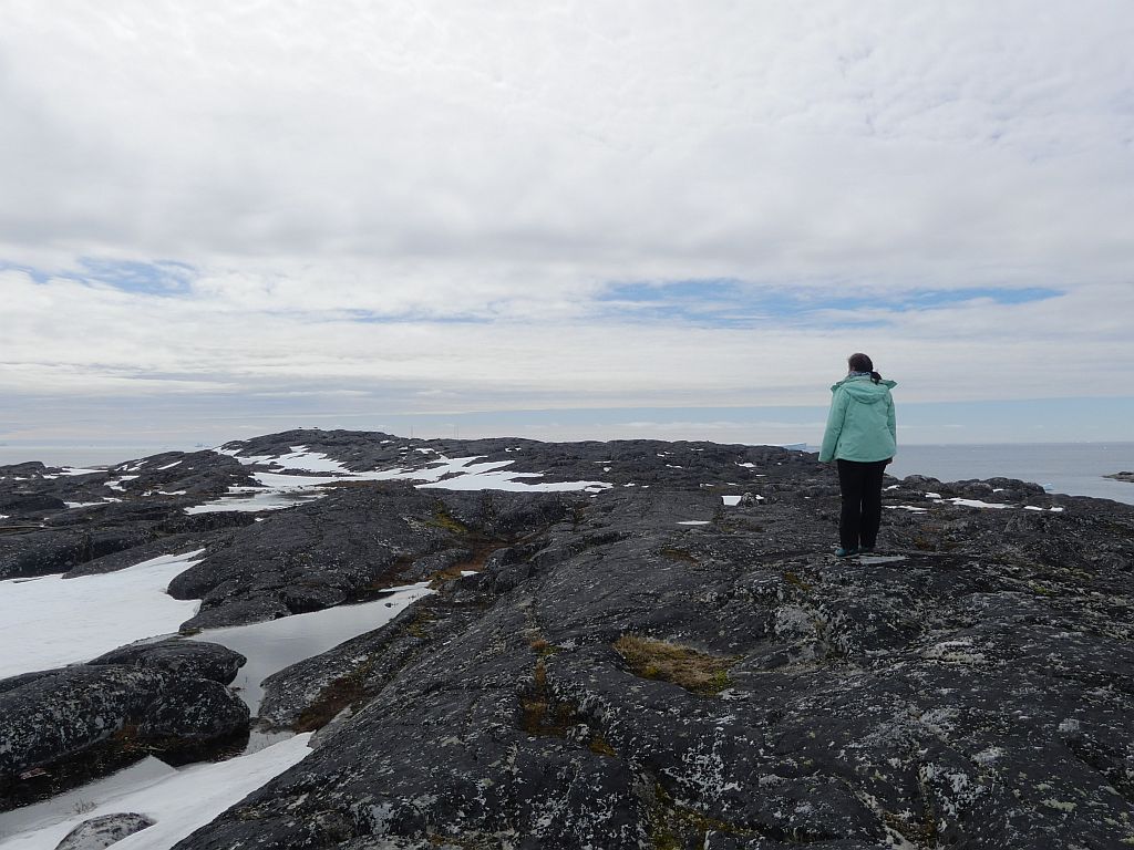 Für den zweiten Tag auf der Disko Insel hatten wir keinen genauen Plan. Eigentlich wollten wir einen Hike zu einem nahen Berg machen – aber aufgrund des überraschenden Schneefalls vor ein paar Wochen war der Weg sehr matschig und da wir heute Abend noch mit dem Boot zurück nach Ilulissat fahren würden und uns dort im Hotel erst umziehen können, wollten wir kein Risiko eingehen.