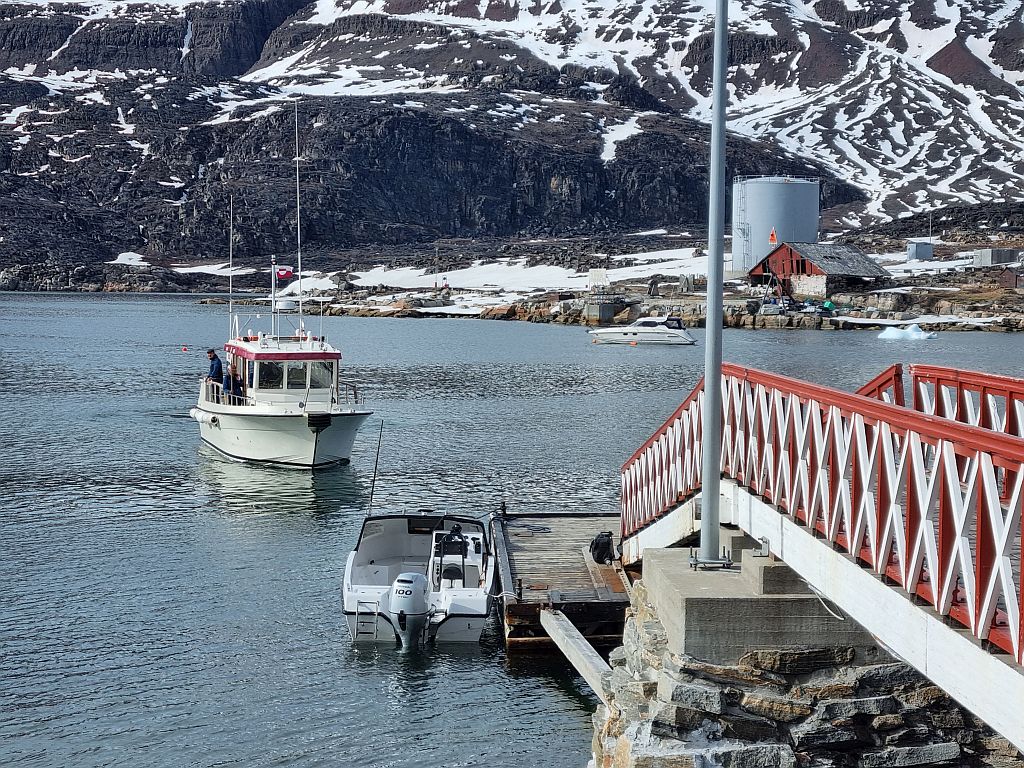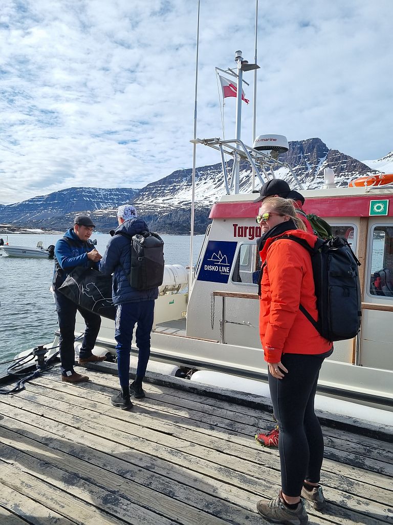 Als dann, ein paar Minuten zu spät für die Abfahrt, ein Schiff der Disko Line auftauchte, begann ein kleiner Ansturm auf den kleinen Pier.