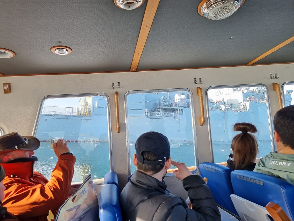 Unser Schiff hatte etwa 50 Minuten Verspätung, weil die Eisberge einen direkten Weg, wieder einmal, unmöglich gemacht hatten.
