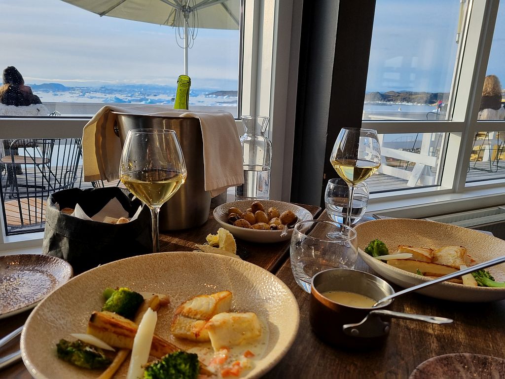 Am Ziel angekommen belohnte dann aber der Ausblick auf Eisberge und die Disko Bay.