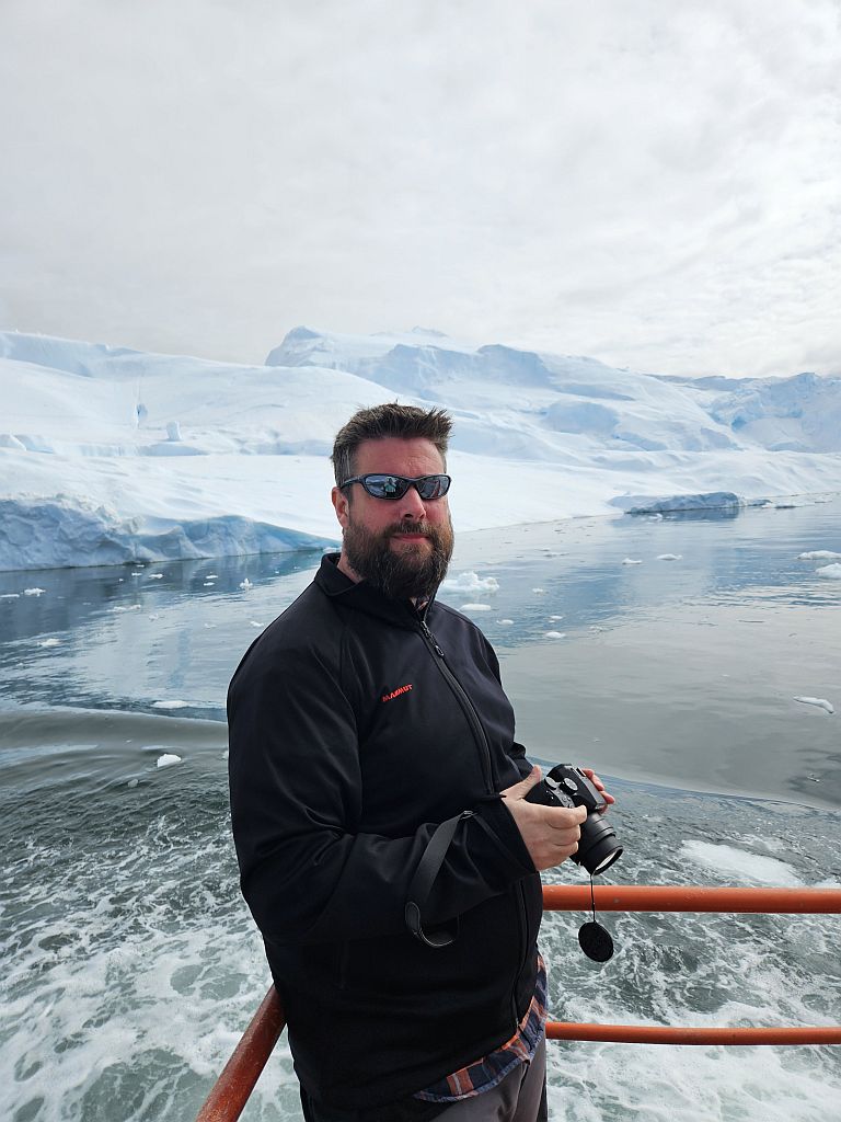 Die paar Gäste verteilten sich auch schön am dem Vorderdeck, dem Heck oder dem oben gelegenen Deck wohin wir beim Einsteigen mit der Gangway gegangen waren. Wir machten uns hinten oder auf dem oberen Deck gemütlich, soweit dies bei der Kälte ging. Aber das ständige hin- und herlaufen zum nächsten wunderschönen Eisberg hielt uns warm.