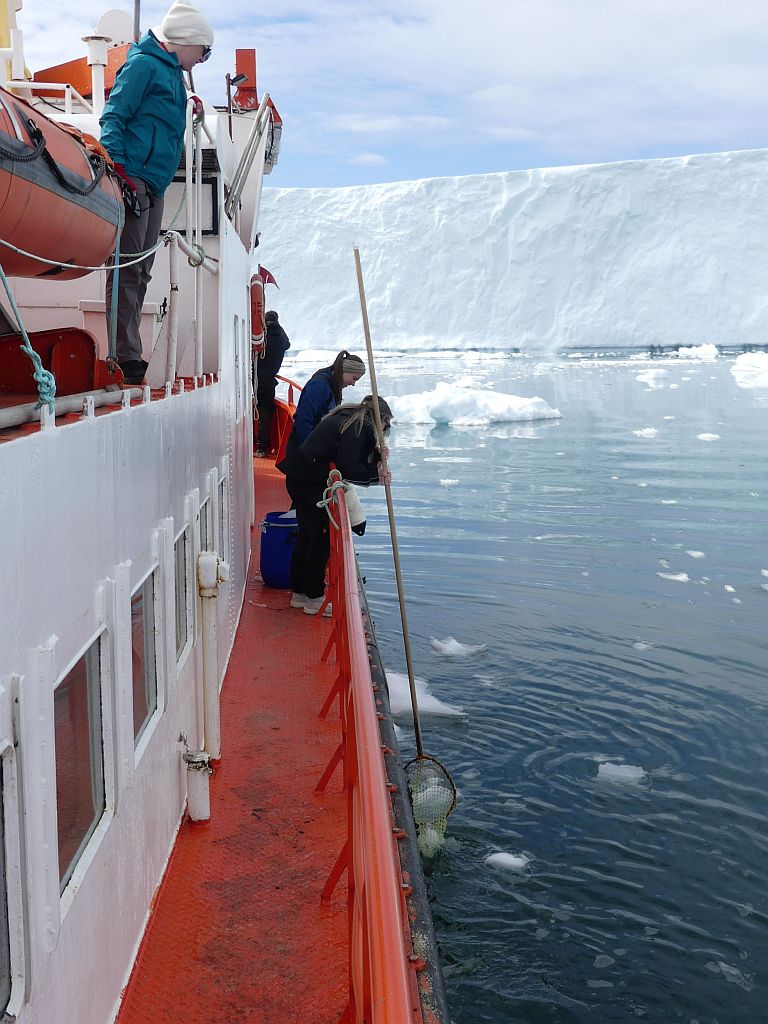 Dabei wurde von zwei Angestellten mit einem Netz was Eis „gefischt“.